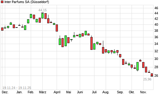Mit dem Rücksetzer auf 26,38 EUR hat die Inter Parfums-Aktie (ISIN FR0004024222) am 18.11.2025 ein neues 3-Jahres-Tief erreicht und damit den Kurs vom 17.11.2025 eingestellt.Die Inter Parfums-Aktie ...weiterlesen