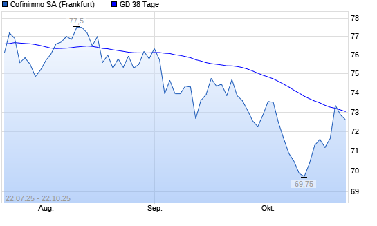 Mit dem Rücksetzer auf 72,85 EUR hat die Cofinimmo-Aktie am 21.10.2025 die 38-Tage-Linie nach unten gekreuzt.Die Cofinimmo-Aktie befindet sich seit dem 10.04.2025 im langfristigen Aufwärtstrend ...weiterlesen