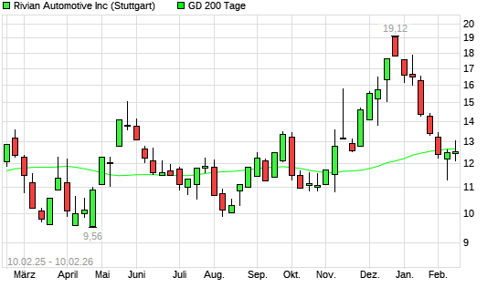 Mit dem Rücksetzer auf 12,28 EUR hat die Rivian Automotive-Aktie am 09.02.2026 die 200-Tage-Linie nach unten gekreuzt.Die Rivian Automotive-Aktie befand sich seit dem 06.02.2026 ...weiterlesen