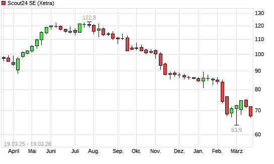 Mit dem Rücksetzer auf 67,50 EUR hat die Scout24-Aktie (ISIN DE000A12DM80) am 18.03.2026 ein neues 12-Monats-Tief erreicht und damit den Kurs vom 18.02.2026 ...weiterlesen