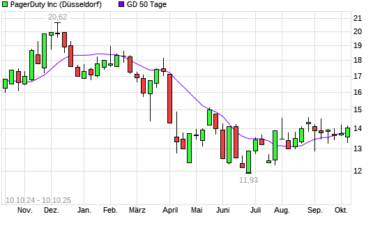 Mit dem Anstieg auf 14,40 EUR hat die PagerDuty-Aktie am 09.10.2025 die 50-Tage-Linie nach oben gekreuzt.Die PagerDuty-Aktie befindet sich seit dem 28.03.2025 im langfristigen Abwärtstrend und ...weiterlesen