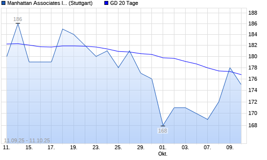 Mit dem Rücksetzer auf 177,00 EUR hat die Manhattan Associates-Aktie am 10.10.2025 die 20-Tage-Linie nach unten gekreuzt.Die Manhattan Associates-Aktie befindet sich seit dem 29.01.2025 ...weiterlesen