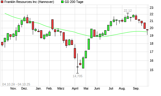 Mit dem Anstieg auf 19,51 EUR hat die Franklin Resources-Aktie am 03.10.2025 die 200-Tage-Linie nach oben gekreuzt.Die Franklin Resources-Aktie befand sich seit dem 02.10.2025 im langfristigen ...weiterlesen