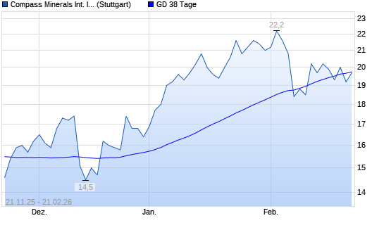 Mit dem Rücksetzer auf 18,90 EUR hat die Compass Minerals-Aktie am 20.02.2026 die 38-Tage-Linie nach unten gekreuzt.Die Compass Minerals-Aktie befindet sich seit dem 16.12.2025 ...weiterlesen