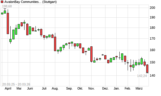 Mit dem Rücksetzer auf 142,26 EUR hat die AvalonBay Communities-Aktie (ISIN US0534841012) am 19.03.2026 ein neues 12-Monats-Tief erreicht und damit den Kurs vom ...weiterlesen