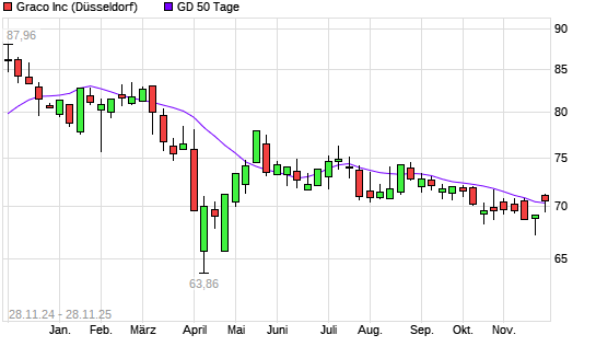 Mit dem Rücksetzer auf 70,56 EUR hat die Graco-Aktie am 27.11.2025 die 50-Tage-Linie nach unten gekreuzt.Die Graco-Aktie befindet sich seit dem 02.04.2025 im langfristigen Abwärtstrend ...weiterlesen