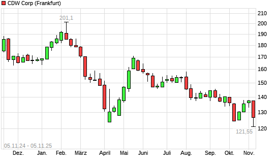 Mit dem Rücksetzer auf 121,70 EUR hat die CDW Corporation-Aktie (ISIN US12514G1085) am 04.11.2025 ein neues 3-Jahres-Tief erreicht und damit den Kurs vom 10.10.2025 eingestellt.Die CDW ...weiterlesen