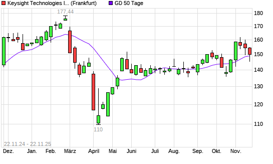Mit dem Rücksetzer auf 146,68 EUR hat die Keysight Technologies-Aktie am 21.11.2025 die 50-Tage-Linie nach unten gekreuzt.Die Keysight Technologies-Aktie befindet sich seit dem 29.10.2025 ...weiterlesen