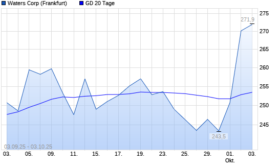 Mit dem Anstieg auf 270,10 EUR hat die Waters-Aktie am 02.10.2025 die 20-Tage-Linie nach oben gekreuzt.Die Waters-Aktie befindet sich seit dem 02.04.2025 im langfristigen Abwärtstrend und hat ...weiterlesen