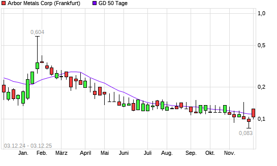 Mit dem Anstieg auf 0,12 EUR hat die Arbor Metals-Aktie am 02.12.2025 die 50-Tage-Linie nach oben gekreuzt.Die Arbor Metals-Aktie befindet sich seit dem 26.03.2025 im langfristigen Abwärtstrend ...weiterlesen