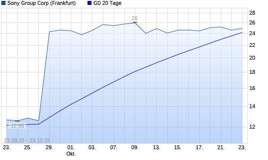 Mit dem Rücksetzer auf 24,65 EUR hat die Sony-Aktie am 22.10.2025 die 20-Tage-Linie nach unten gekreuzt.Die Sony-Aktie befindet sich seit dem 06.08.2025 im langfristigen Aufwärtstrend und ...weiterlesen
