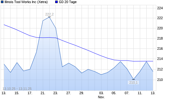 Mit dem Anstieg auf 213,20 EUR hat die Illinois Tool Works (ITW)-Aktie am 12.11.2025 die 20-Tage-Linie nach oben gekreuzt.Die Illinois Tool Works (ITW)-Aktie befindet sich seit dem 11.03.2025 ...weiterlesen