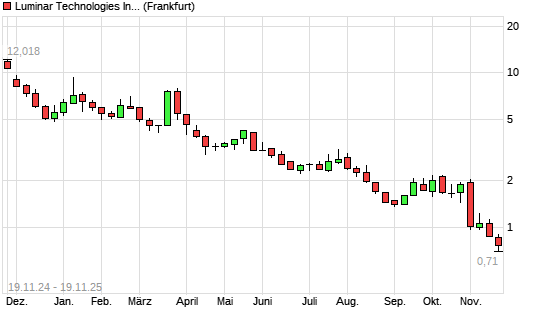 Mit dem Rücksetzer auf 0,75 EUR hat die Luminar Technologies-Aktie (ISIN US5504243032) am 18.11.2025 ein neues All-Time-Low erreicht und damit den Kurs vom 17.11.2025 eingestellt.Der Abstand ...weiterlesen