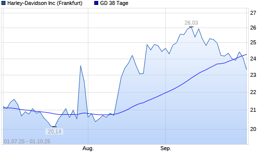 Mit dem Rücksetzer auf 24,06 EUR hat die Harley-Davidson-Aktie am 30.09.2025 die 38-Tage-Linie nach unten gekreuzt.Die Harley-Davidson-Aktie befindet sich seit dem 25.08.2025 im langfristigen ...weiterlesen
