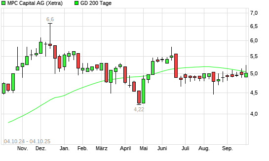 Mit dem Rücksetzer auf 4,93 EUR hat die MPC Capital-Aktie am 03.10.2025 die 200-Tage-Linie nach unten gekreuzt.Die MPC Capital-Aktie befand sich seit dem 01.10.2025 im langfristigen Aufwärtstrend ...weiterlesen