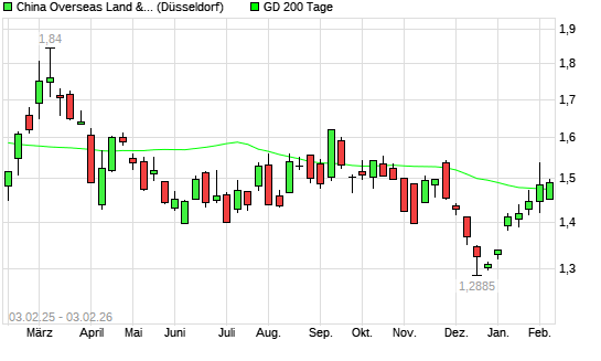 Mit dem Rücksetzer auf 1,47 EUR hat die China Overseas Land & Investment-Aktie am 02.02.2026 die 200-Tage-Linie nach unten gekreuzt.Die China Overseas Land & ...weiterlesen