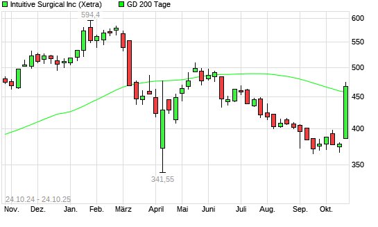 Mit dem Anstieg auf 472,75 EUR hat die Intuitive Surgical-Aktie am 23.10.2025 die 200-Tage-Linie nach oben gekreuzt.Die Intuitive Surgical-Aktie befand sich seit dem 06.06.2025 im langfristigen ...weiterlesen