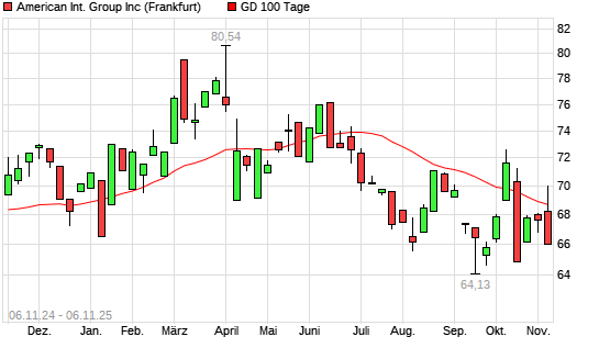 Mit dem Anstieg auf 69,95 EUR hat die AIG-Aktie am 05.11.2025 die 100-Tage-Linie nach oben gekreuzt.Die AIG-Aktie befindet sich seit dem 13.10.2025 im langfristigen Abwärtstrend und hat in diesem ...weiterlesen