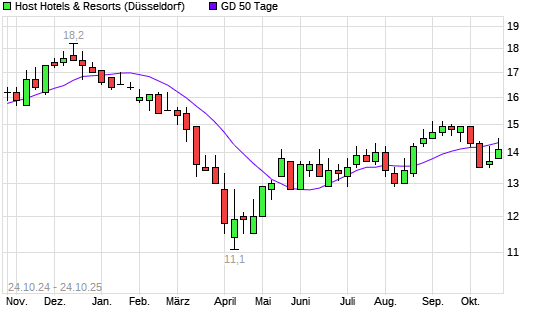 Mit dem Anstieg auf 14,20 EUR hat die Host Hotels & Resorts-Aktie am 23.10.2025 die 50-Tage-Linie nach oben gekreuzt.Die Host Hotels & Resorts-Aktie befindet sich seit dem 22.10.2025 im ...weiterlesen