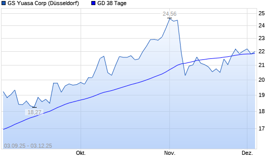 Mit dem Rücksetzer auf 21,92 EUR hat die Gs Yuasa-Aktie am 02.12.2025 die 38-Tage-Linie nach unten gekreuzt.Die Gs Yuasa-Aktie befindet sich seit dem 23.07.2025 im langfristigen Aufwärtstrend ...weiterlesen