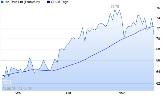 Mit dem Anstieg auf 73,98 EUR hat die Rio Tinto-Aktie am 20.11.2025 die 38-Tage-Linie nach oben gekreuzt.Die Rio Tinto-Aktie befindet sich seit dem 25.09.2025 im langfristigen Aufwärtstrend ...weiterlesen