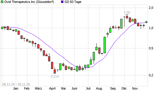 Mit dem Anstieg auf 1,25 EUR hat die Ovid Therapeutics-Aktie am 25.11.2025 die 50-Tage-Linie nach oben gekreuzt.Der Abstand zur 200-Tage-Linie beträgt aktuell +104,88%. ##trendBox## Die ...weiterlesen