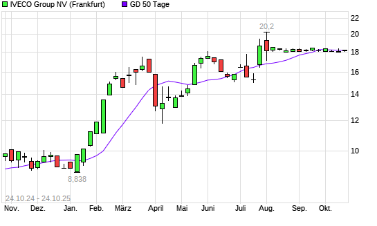 Mit dem Rücksetzer auf 18,14 EUR hat die Iveco Group-Aktie am 23.10.2025 die 50-Tage-Linie nach unten gekreuzt.Die Iveco Group-Aktie befindet sich seit dem 17.01.2025 im langfristigen Aufwärtstrend ...weiterlesen