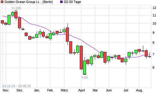 Mit dem Anstieg auf 6,79 EUR hat die Golden Ocean Group-Aktie am 23.10.2025 die 50-Tage-Linie nach oben gekreuzt.Die Golden Ocean Group-Aktie befindet sich seit dem 08.10.2024 im langfristigen ...weiterlesen