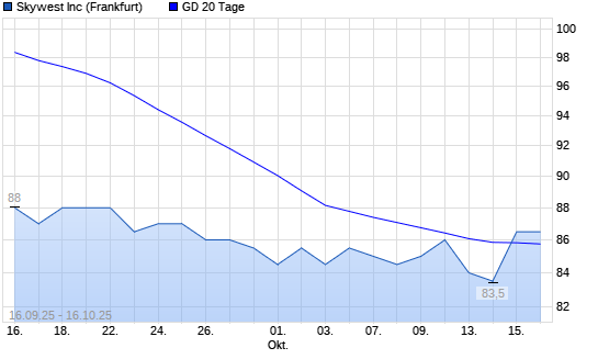 Mit dem Anstieg auf 86,50 EUR hat die SkyWest-Aktie am 15.10.2025 die 20-Tage-Linie nach oben gekreuzt.Die SkyWest-Aktie befindet sich seit dem 09.09.2025 im langfristigen Abwärtstrend und hat ...weiterlesen
