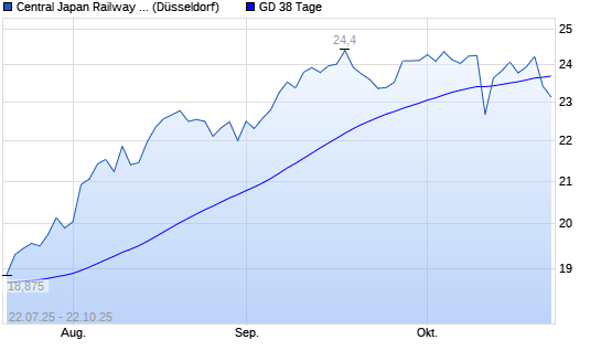 Mit dem Rücksetzer auf 23,70 EUR hat die Central Japan Railway-Aktie am 21.10.2025 die 38-Tage-Linie nach unten gekreuzt.Die Central Japan Railway-Aktie befindet sich seit dem 27.06.2025 ...weiterlesen