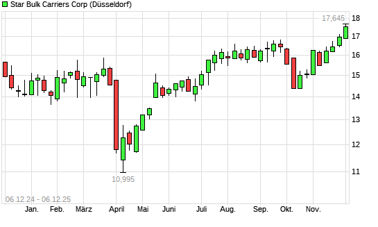 Mit dem Anstieg auf 17,40 EUR hat die Star Bulk Carriers-Aktie (ISIN MHY8162K2046) am 05.12.2025 ein neues 12-Monats-Hoch erreicht und damit den Kurs vom 04.12.2025 eingestellt.Die Star Bulk ...weiterlesen