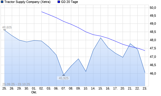 Mit dem Anstieg auf 47,93 EUR hat die Tractor Supply Company-Aktie am 24.10.2025 die 20-Tage-Linie nach oben gekreuzt.Die Tractor Supply Company-Aktie befindet sich seit dem 25.09.2025 im langfristigen ...weiterlesen