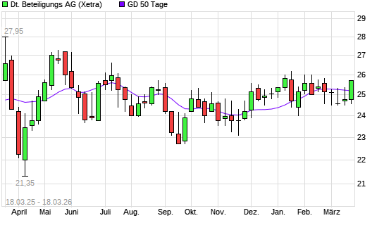 Mit dem Anstieg auf 25,35 EUR hat die Deutsche Beteiligungs-Aktie am 17.03.2026 die 50-Tage-Linie nach oben gekreuzt.Die Deutsche Beteiligungs-Aktie befindet sich seit dem 11.03.2026 ...weiterlesen