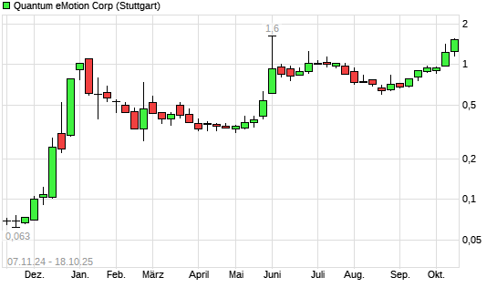 Mit dem Anstieg auf 1,56 EUR hat die QUANTUM NUMBERS NEW-Aktie (ISIN CA74767K1030) am 17.10.2025 ein neues All-Time-High erreicht und damit den Kurs vom 15.10.2025 eingestellt.Der Abstand ...weiterlesen
