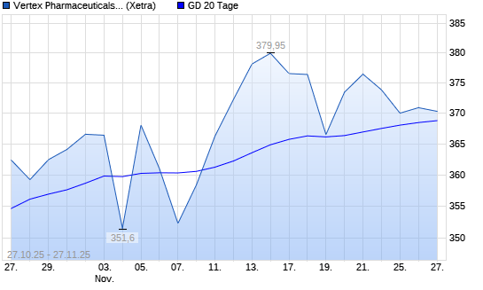 Mit dem Anstieg auf 369,60 EUR hat die Vertex Pharmaceuticals-Aktie am 26.11.2025 die 20-Tage-Linie nach oben gekreuzt.Die Vertex Pharmaceuticals-Aktie befindet sich seit dem 06.05.2025 im langfristigen ...weiterlesen