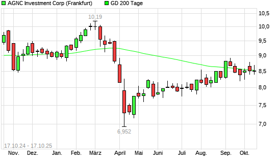 Mit dem Rücksetzer auf 8,47 EUR hat die AGNC INV.-Aktie am 16.10.2025 die 200-Tage-Linie nach unten gekreuzt.Die AGNC INV.-Aktie befand sich seit dem 13.10.2025 im langfristigen Aufwärtstrend ...weiterlesen