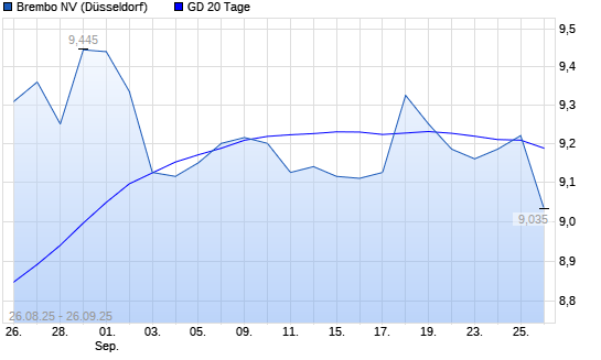 Mit dem Anstieg auf 9,19 EUR hat die Brembo-Aktie am 25.09.2025 die 20-Tage-Linie nach oben gekreuzt.Die Brembo-Aktie befindet sich seit dem 08.08.2025 im langfristigen Aufwärtstrend und hat ...weiterlesen