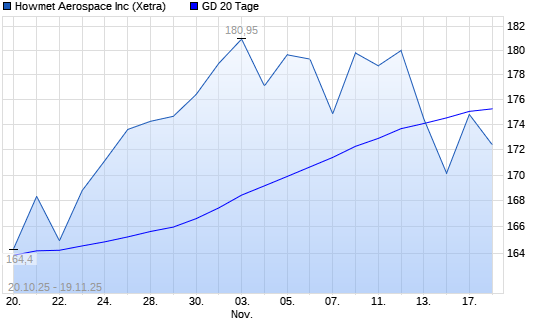 Mit dem Rücksetzer auf 171,20 EUR hat die Howmet Aerospace-Aktie am 18.11.2025 die 20-Tage-Linie nach unten gekreuzt.Die Howmet Aerospace-Aktie befindet sich seit dem 01.11.2023 im langfristigen ...weiterlesen