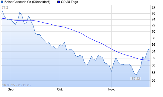 Mit dem Rücksetzer auf 60,70 EUR hat die Boise Cascade-Aktie am 25.11.2025 die 38-Tage-Linie nach unten gekreuzt.Die Boise Cascade-Aktie befindet sich seit dem 03.02.2025 im langfristigen ...weiterlesen