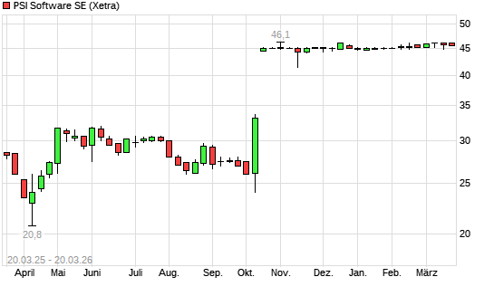 Mit dem Anstieg auf 45,80 EUR hat die PSI Software-Aktie (ISIN DE000A0Z1JH9) am 19.03.2026 ein neues 3-Jahres-Hoch erreicht und damit den Kurs vom 02.03.2026 eingestellt.Die ...weiterlesen
