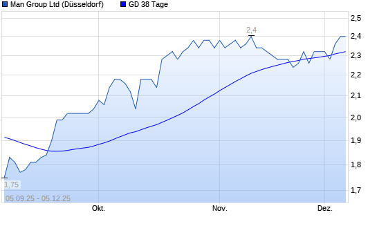 Mit dem Anstieg auf 2,36 EUR hat die Man Group-Aktie am 04.12.2025 die 38-Tage-Linie nach oben gekreuzt.Die Man Group-Aktie befindet sich seit dem 14.10.2025 im langfristigen Aufwärtstrend und ...weiterlesen