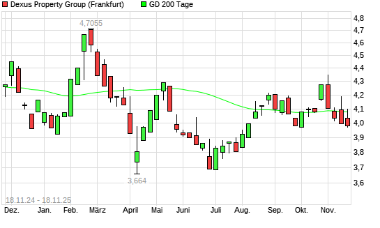 Mit dem Anstieg auf 4,10 EUR hat die Dexus Property Group-Aktie am 17.11.2025 die 200-Tage-Linie nach oben gekreuzt.Die Dexus Property Group-Aktie befand sich seit dem 14.11.2025 im langfristigen ...weiterlesen