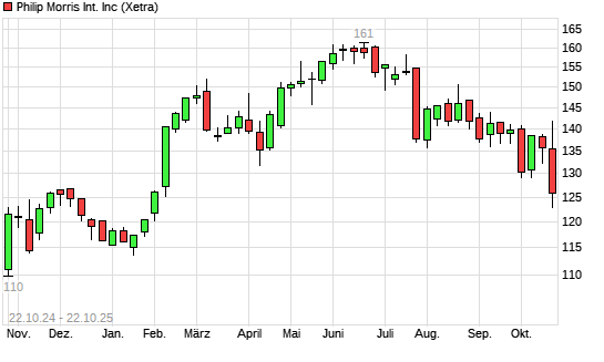 Mit dem Rücksetzer auf 129,64 EUR hat die Philip Morris International-Aktie (ISIN US7181721090) am 21.10.2025 ein neues 6-Monats-Tief erreicht und damit den Kurs vom 06.10.2025 eingestellt.Die ...weiterlesen