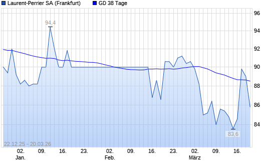 Mit dem Rücksetzer auf 85,80 EUR hat die Laurent-Perrrier-Aktie am 19.03.2026 die 38-Tage-Linie nach unten gekreuzt.Die Laurent-Perrrier-Aktie befindet sich seit dem 14.01.2026 ...weiterlesen