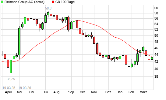 Mit dem Anstieg auf 44,30 EUR hat die Fielmann-Aktie am 18.03.2026 die 100-Tage-Linie nach oben gekreuzt.Die Fielmann-Aktie befindet sich seit dem 22.10.2025 im langfristigen ...weiterlesen