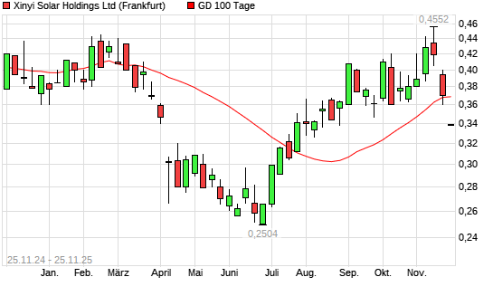 Mit dem Rücksetzer auf 0,34 EUR hat die XINYI SOLAR Holding-Aktie am 24.11.2025 die 100-Tage-Linie nach unten gekreuzt.Die XINYI SOLAR Holding-Aktie befindet sich seit dem 25.08.2025 im ...weiterlesen