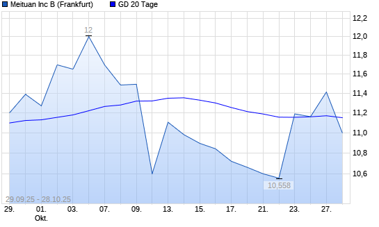 Mit dem Anstieg auf 11,41 EUR hat die Meituan-Aktie am 27.10.2025 die 20-Tage-Linie nach oben gekreuzt.Die Meituan-Aktie befindet sich seit dem 04.04.2025 im langfristigen Abwärtstrend und hat ...weiterlesen