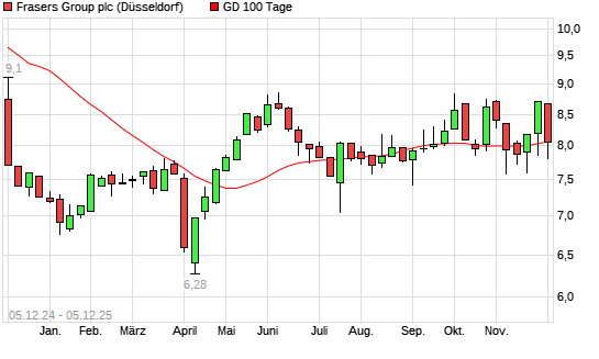 Mit dem Anstieg auf 8,39 EUR hat die Sports Direct International-Aktie am 04.12.2025 die 100-Tage-Linie nach oben gekreuzt.Die Sports Direct International-Aktie befindet sich seit dem 24.11.2025 ...weiterlesen
