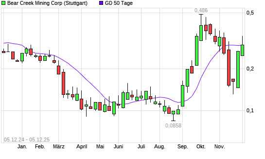 Mit dem Rücksetzer auf 0,30 EUR hat die Bear Creek Mining-Aktie am 04.12.2025 die 50-Tage-Linie nach unten gekreuzt.Die Bear Creek Mining-Aktie befindet sich seit dem 27.11.2025 im langfristigen ...weiterlesen