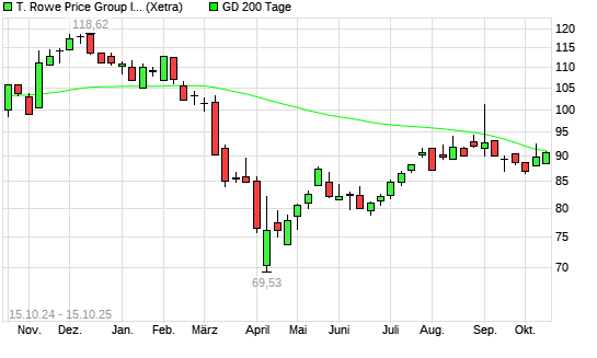 Mit dem Anstieg auf 90,08 EUR hat die T. Rowe Price Group-Aktie am 14.10.2025 die 200-Tage-Linie nach oben gekreuzt.Die T. Rowe Price Group-Aktie befand sich seit dem 13.10.2025 im langfristigen ...weiterlesen